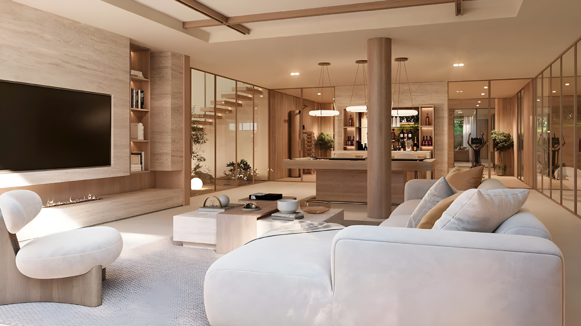 A nagy üvegfelületek, a természetes anyagok és a nyitott terek mind azt a célt szolgálják, hogy az otthonod szinte összeolvadjon a környezettel.