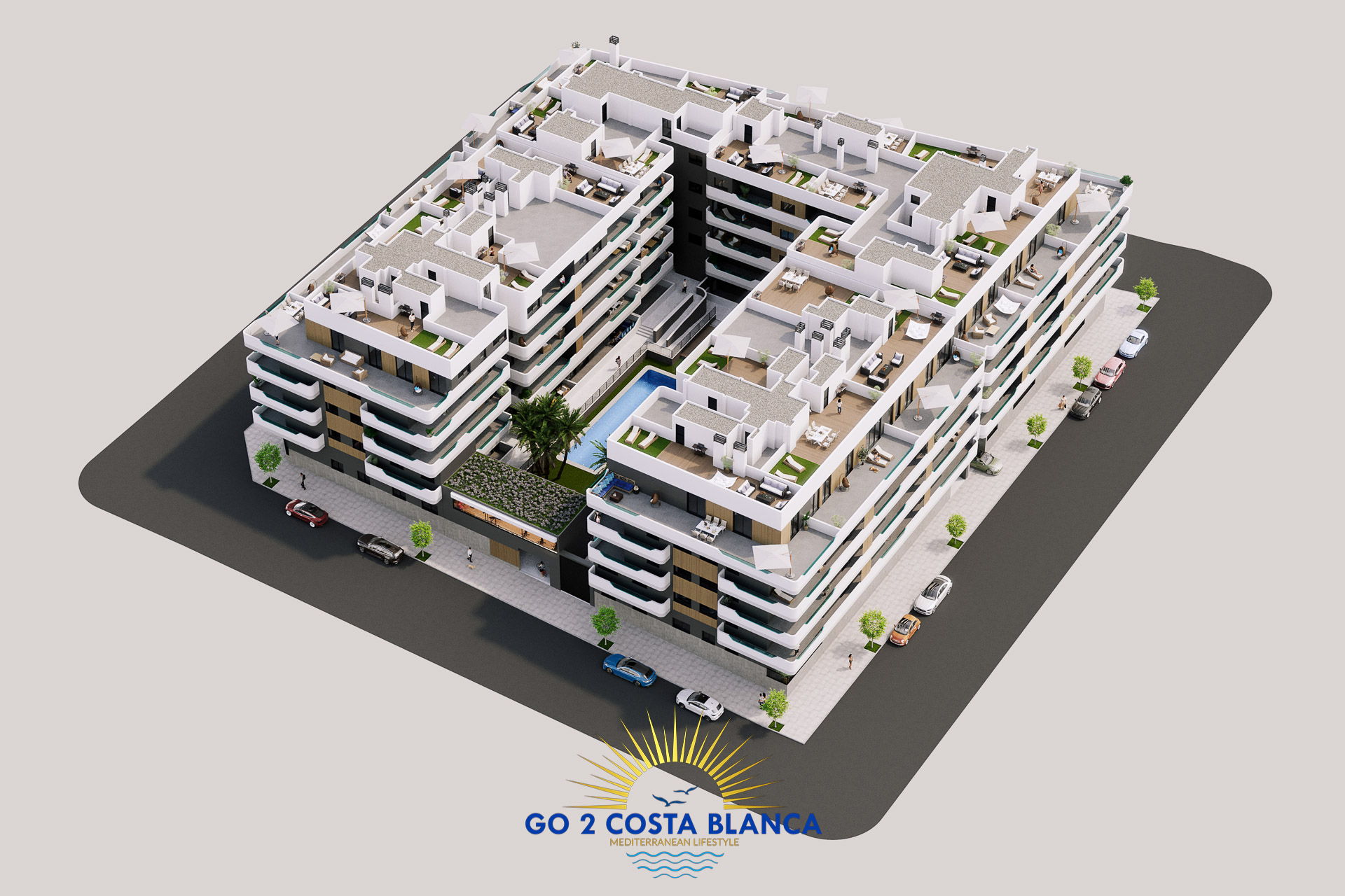 A Sea Essence egy modern, zárt lakópark Santa Pola szívében, amely 2 és 3 hálószobás apartmanokat, földszinti kertkapcsolatos lakásokat és tágas penthouse otthonokat kínál. A projektet letisztult dizájn, minőségi kivitelezés és kiváló életminőség jellemzi, mindezt a Földközi-tenger közelségében.